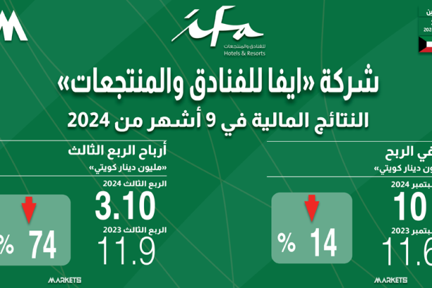 تراجعت أرباح شركة ايفا للفنادق والمنتجعات في الربع الثالث من عام 2024 بنحو 74% على…
