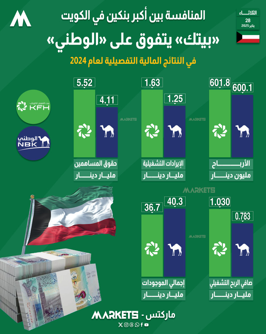 • أرباح الربع الثاني تراجعت 4.3% على أساس سنوي لتبلغ 14.7 مليون دينار • انخفاض صافي الربح يعود لتراجع الدخل وارتفاع المصروفات التشغيلية حقق بنك الخليج أرباحاً صافية بقيمة 24.04 مليون دينار خلال النصف الأول من عام 2025 ، مقابل 28.2 مليون دينار خلال الفترة المماثلة من عام 2024 ، بانخفاض نسبته 14.8%. وخلال الربع الثاني من عام 2025 ،…