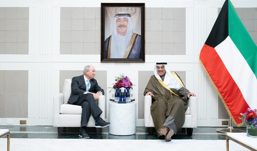 استقبل ممثل حضرة صاحب السمو أمير البلاد الشيخ مشعل الأحمد، سمو ولي العهد الشيخ صباح الخالد، اليوم، بروس فلات الرئيس التنفيذي لشركة بروكفيلد لإدارة الأصول في مقر وفد دولة الكويت الدائم لدى الأمم المتحدة بمدينة نيويورك الأميركية.