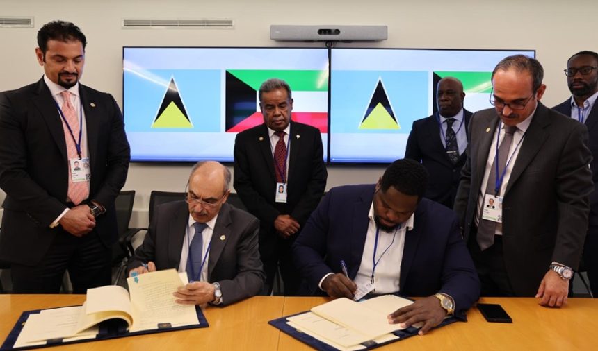 ووقع اتفاقية القرض نيابة عن حكومة سانت لوسيا مدير الشؤون المالية في وزارة المالية عمران وليامز فيما وقعها نيابة عن الصندوق الكويتي المدير العام بالوكالة وليد البحر.