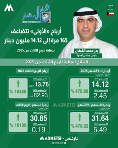 وحققت الشركة أرباحاً أول 9 أشهر من عام 2025 بقيمة 14.11 مليون دينار، مقابل 2.45 مليون دينار أرباح الفترة ذاتها من العام المنصرم، بزيادة سنوية 475.98%.