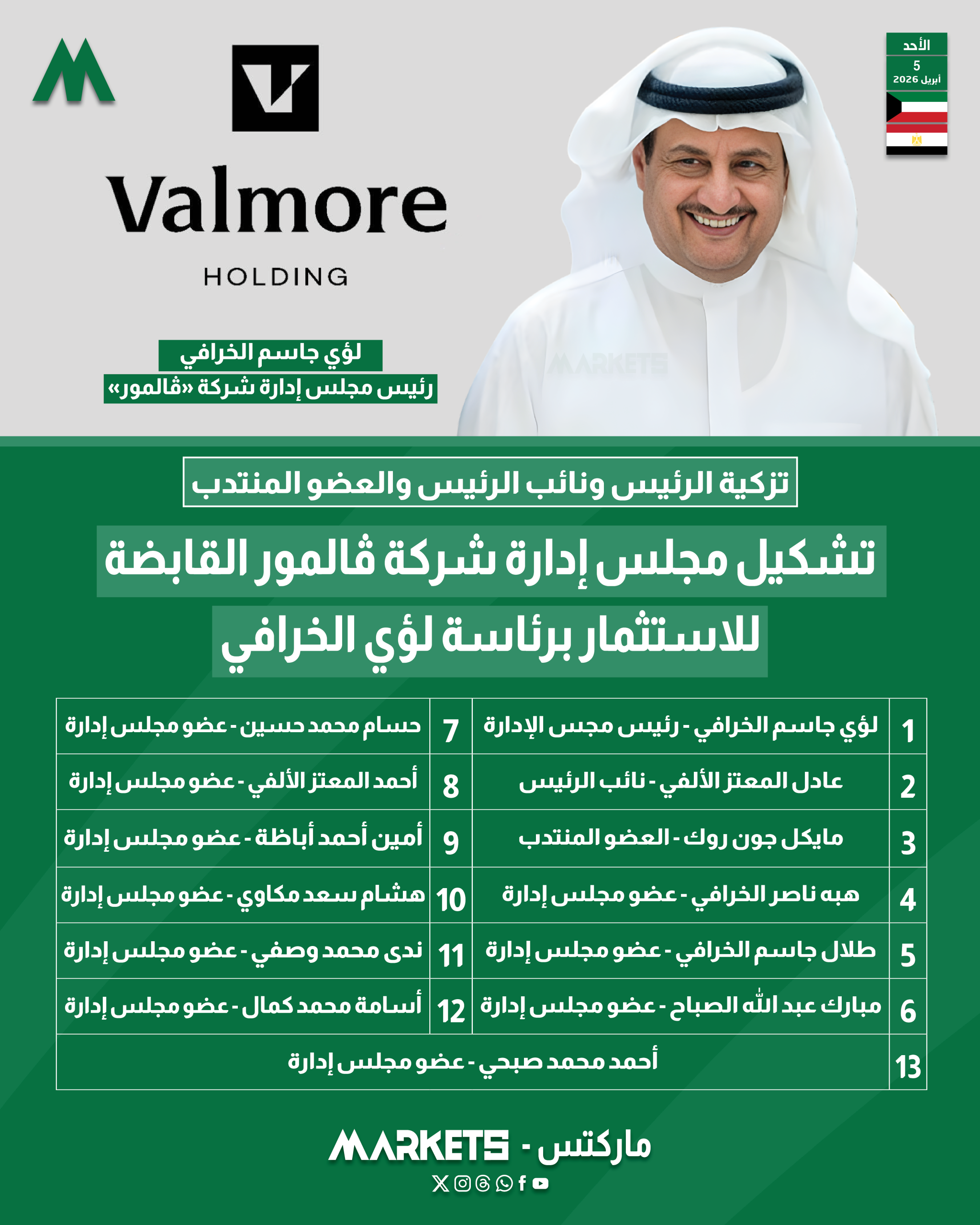 تشكيل مجلس إدارة شركة ڤالمور القابضة للاستثمار برئاسة لؤي الخرافي