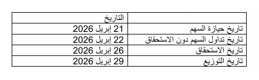 ووافقت الجمعية العامة على توصية مجلس الإدارة بتوزيع أرباح نقدية بنسبة 8% أي بواقع 8 فلوس للسهم، بقيمة إجمالية تعادل 3.88 مليون دينار ، وذلك للمساهمين المقيدين في سجلات مساهمي الشركة كما في نهاية يوم الاستحقاق المحدد له بعد 10 أيام من تاريخ الإعلان عن نموذج الاستحقاق ، ويبدأ توزيع هذه الأرباح بعد 3 أيام عمل من نهاية تاريخ الاستحقاق ، مع تفويض مجلس الإدارة بتعديل الجدول الزمني لاستحقاقات الأسهم في حال تعذر الإعلان عن تأكيد الجدول الزمني قبل 8 أيام عمل على الأقل من تاريخ الاستحقاق بسبب تأخر إجراءات الشهر.